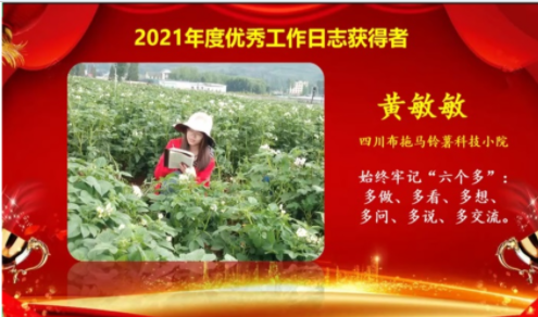 黄敏敏同学作为四川科技小院研究生代表,以农学院的布拖马铃薯科技小院为例,在大会上做了“如何做好科技小院科普工作”的交流报告,得到与会师生的一致好评。我院果业科技小院立足于蒲江县域内30万亩柑橘和10万亩猕猴桃产业,针对果业产业问题,开展了砧穗互作、产业提质增效系列研究,总结了多项前沿技术经验,形成了完善的技术体系和示范推广模式,入驻研究生连续3年受到表彰,相关工作也得到了本次组委会的充分肯定。
