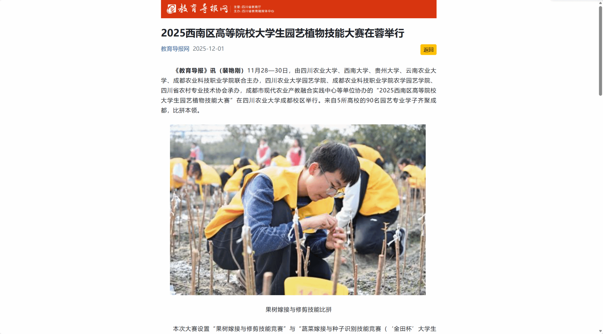 【外媒视角-教育导报】2025西南区高等院校老员工园艺植物技能大赛在蓉举行