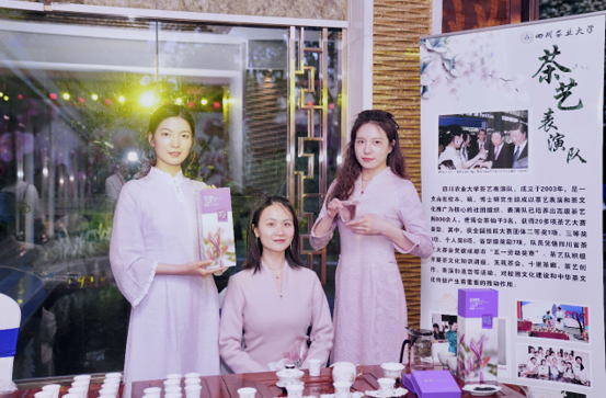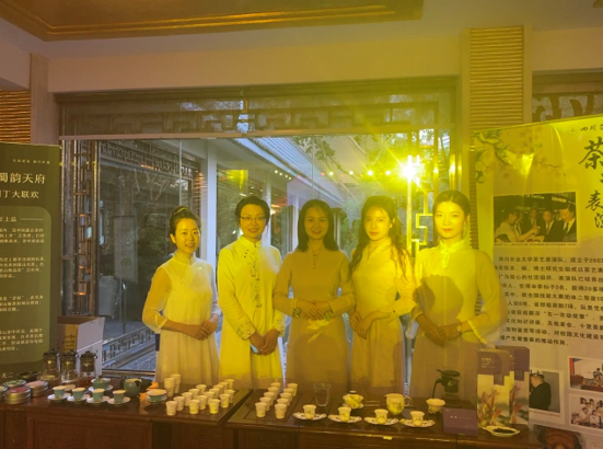 公司作为协办单位参与本次大联欢活动,负责策划定制川茶伴手礼和推广川茶文化板块。自3月初接到邀请起,公司组织了由博士、硕士和本科生的茶艺展示队伍,通过严格的训练,5名师生组织代表队参加了川茶文化推广活动,向海内外展示了公司茶人的风采。