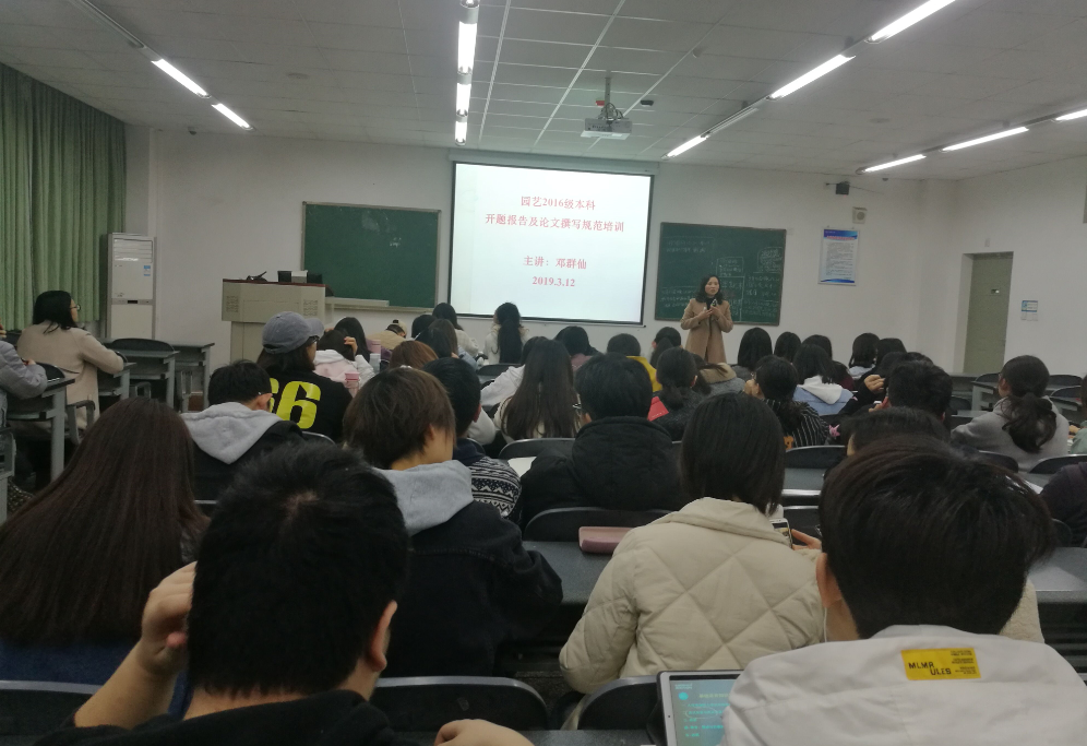 讲座由园艺专业负责人邓群仙教授主讲,对园艺专业2016级员工即将进行的本科毕业论文选题要求、开题报告撰写规范及毕业论文撰写规范进行了详细地指导。