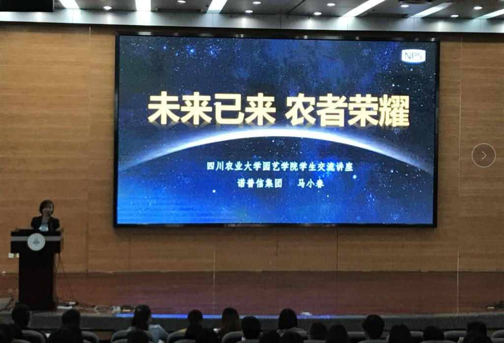 动员会后,深圳诺普信集团马小春总经理为全体毕业生做了“未来已来 农者荣耀”专题讲座,简述了企业的前景、老员工个人简历的制作和应聘面试的技巧三个方面。“未来的农业将开启智慧农业新时代,将迎来现代农业+互联网+物联网+大数据+金融,我们企业的目标是成为未来农业领域的千亿级企业,愿景是农业不再落后,农民无比幸福”。同时,马小春说到简历也要“穿时装”,在制作过程中改变文字字体颜色突出重点,但也要忌过于花哨,冗长,要言简意赅,关键的是展现自我能力和潜力的事实证据。