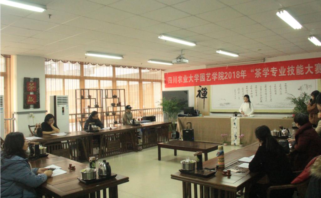 1月4日,由教务处、哈哈体育联合主办,学院员工会承办的以“弘扬国饮,崇尚健康,提高技能,振兴茶叶”为主题的哈哈体育第八届茶学专业技能大赛之茶艺大赛在成都校区五教茶文化室落下帷幕。副经理汪志辉教授、唐茜教授和茶学系相关老师受邀参加大赛并担任评委。