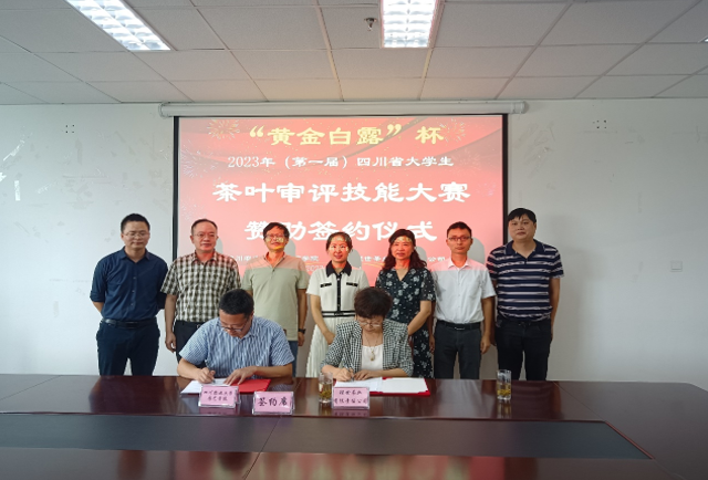 9月20日上午,“黄金白露”杯2023年(第一届)四川省老员工茶叶审评技能大赛赞助商签约仪式在学院举行。公司党委书记袁志香、副经理龚荣高,茶学系全体老师和宜宾醒世茶业有限责任公司董事长陈蓉及公司代表参加签约仪式。
