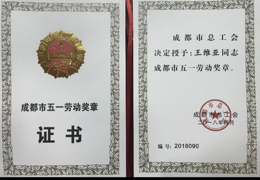 4月27日,成都市总工会庆祝“五一”国际劳动节暨五一劳动奖表彰大会在劳动人民文化宫多功能厅隆重举行举行。公司茶学研究生王维亚被授予“五一劳动奖章”。