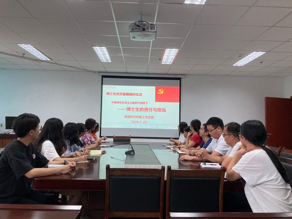 2020年7月28日,果蔬研究所博士研究生党员在七教509召开暑期组织生活会,主要围绕中国特色社会主义新时代背景下-博士生的责任和担当进行了学习和讨论。党支部书记王小蓉教授主持会议。