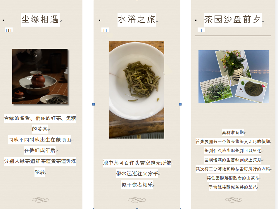 活动初赛共接收40份优秀作品,聆听到许多国茶与守护人的故事。有参赛队伍将茶比作美人,“惊鸿一瞥,此生难忘”是他们对“东方美人”的赞誉;亦有《如果没有茶》的反向思考,“如果没有茶,或许琵琶女不会在江心,等待她那‘前月浮梁买茶去’的丈夫,也不会相逢白居易,奏得琵琶曲,《琵琶行》终成空想。”或许我们的语言会苍白很多,迎难而上,不能说休对故人思故国,且将薪火试新茶。“······”这些都是“守护人”于他/她守护那款茶之深情,叙故事,亦是娓娓道来与茶之“情”。