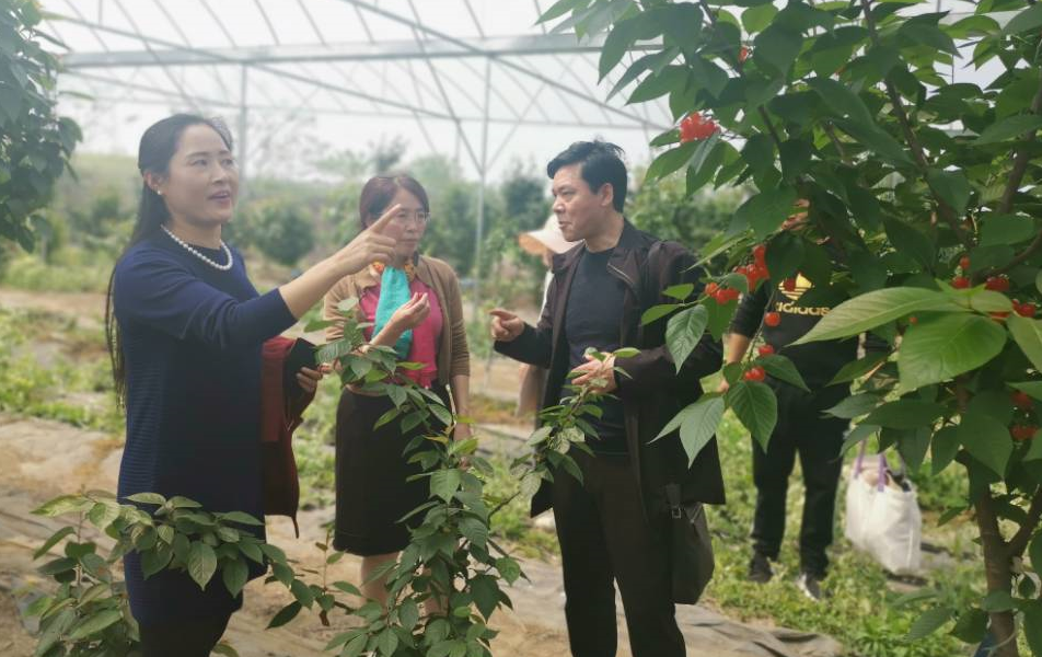 大家一行重点考察了王小蓉委员的科研基地-樱桃和柑橘种质资源圃,对王小蓉团队对种质资源收集,保存和新品种选育等工作所做的坚持和努力进行了高度评价。王小蓉团队走遍国内12个省(市)70个县(市)106个乡镇,搜集近千份野生樱桃资源,通过对搜集来的野生樱桃资源进行评价和鉴定,建立了我国樱桃资源类型最多、遗传多样性最丰富的田间资源圃。从三月下旬开始,樱桃育种圃已有部分樱桃由青转红,如红宝石般晶莹剔透,到目前4月还有大量过挂余枝头。樱桃正当时,大家还对科研新品种进行了品尝,品尝着黄的、黄底红晕、橙红的、紫黑的、黑紫的酸的、酸甜的、纯甜的、甜酸的、苦的、复杂味的各色各味的樱桃品质。不同的樱桃品种口味,委员们表情迥异,为如此多各色、各味的樱桃品种感到惊叹。大家高度评价了王小蓉团队为樱桃和柑橘种质资源收集,保存和新品种选育等所做的工作,希望王小蓉团队继续通过品比实验,选育出更多符合经济发展的商品果。
