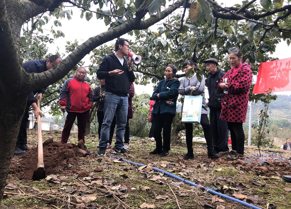 在博士工作站所在地小堰村,王浩围绕秋冬季樱桃果园管理开展现场技术培训,系统讲解了秋冬季如何对樱桃树开展科学开施基肥、肥料具体种类、如何识别樱桃树树体花芽分化以及越冬防护等内容,并进行了田间施基肥的示范操作。当地樱桃种植大户和技术员60余人参加培训。