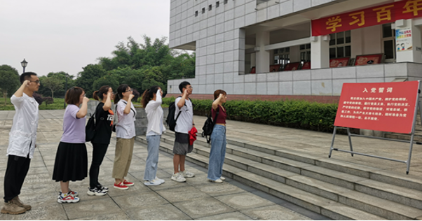 为庆祝中国共产党成立100周年,扎实开展好党史学习教育,增强支部党员同学的使命感和责任感。6月26日,学院研究生茶学党支部全体党员到郫都区唐昌烈士陵园开展主题党日活动,并进行了预备党员宣誓和集体重温入党誓词活动。