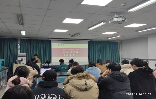 12月14日,为引领广大研究生深入学习践行十九届六中全会精神,勇担青年时代使命,使党员同志在实践中受教育、长才干、做贡献,学院研究生专硕党支部开展了向榜样学习的交流分享会。