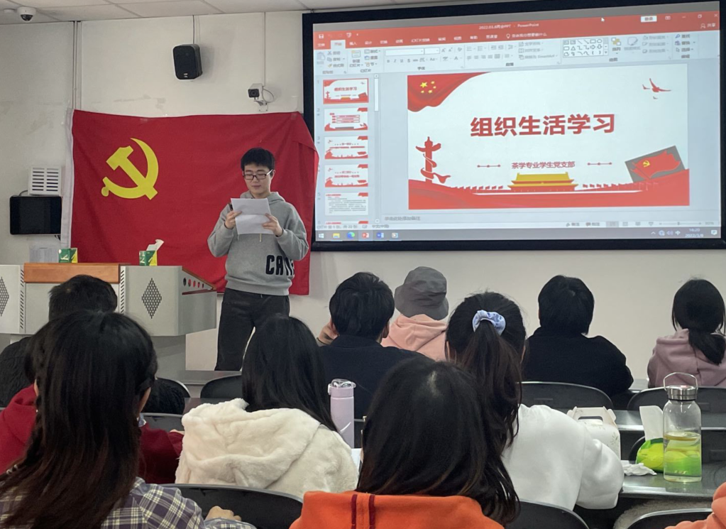 3月8日,茶学专业员工党支部在4教B209开展政治学习,旨在进一步加强支部党员思想认识,凝聚共识,支部全体党员参会。