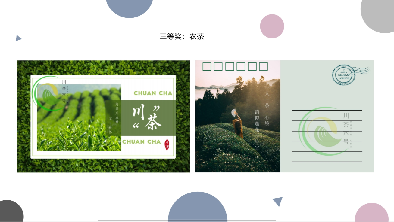 活动自3月31日线上宣传以来,吸引了成都校区各学院同学踊跃参加。大赛采用自由组队的形式进行报名,分初赛和复赛两个阶段。初赛比赛形式为茶logo设计,参赛选手们围绕“茶”这一主题展开叙述,采用参赛人员的随机分组互评形式进行评分。一片茶叶,凝聚一方水土,“国茶守护人”们以“茶”为载体,利用文字、图形与“茶”相结合,将茶学文化细细刻画,使其跃然纸上。明前金奖惠明茶、南路边茶康砖、公司选育的川茶六号及紫茶紫嫣等形象幻化为简单的线条图形,诉说着茶的历史……小组间根据作品主题是否明确、设计理念是否新颖有含义以及详细的介绍等方面进行相互打分,选取6组队伍进入复赛。