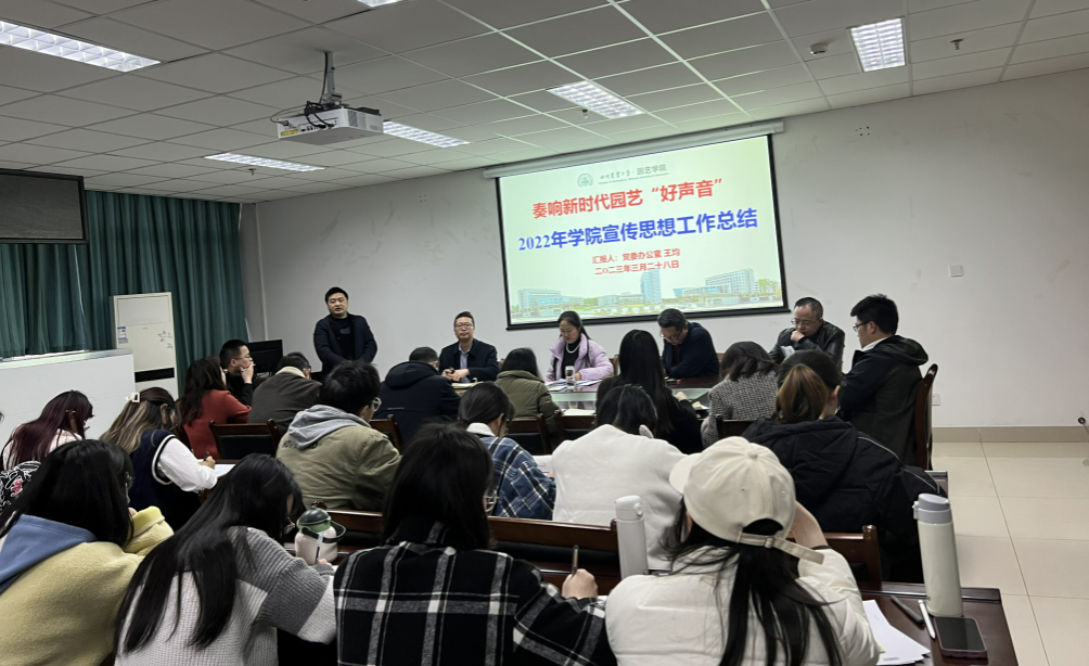 会上,党委办主任、院新闻宣传员王均以“奏响新时代园艺‘好声音’”为题对学院2022年宣传思想工作进行了总结汇报,从宣传工作总要求、主要工作和成效、考核得失分指标分析和下一步工作打算四个方面进行了详细汇报。