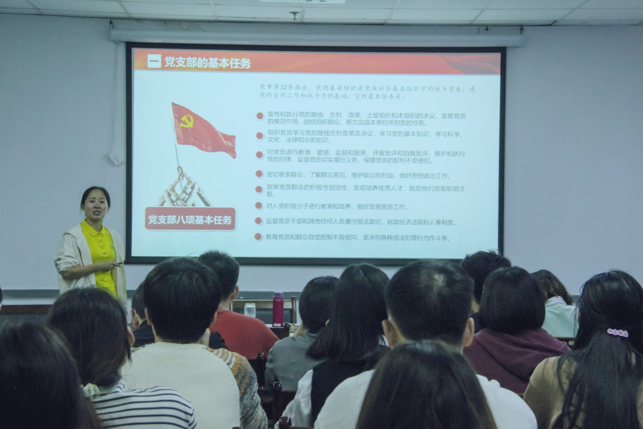 随后,袁志香就党支部党务知识做了培训强调,培训围绕党的基本知识、党务工作要点介绍、党支部相关知识概述、党支部日常工作实务以及党支部建设三年行动计划等方面展开了深入细致的讲解,重申了党的指导思想、性质、路线、目标等基本知识,强调了党员的义务和权利,提出了对党务工作者的基本要求,指明了党支部的基本任务、组织形式、制度建设等方面的工作安排,为各支部书记和委员们提供了切实可行的工作方法和思路。培训最后,袁志香基于“达标、提质、争先”的基本思路提出了党支部建设三年行动计划,为公司党支部建设指明了方向。