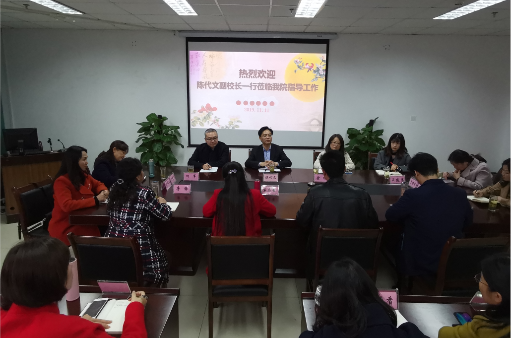 应学院邀请,学校副董事长陈代文带领动物营养研究所所长余冰、副所长何军和副教授王建萍一行到学院就省级研究平台建设申报进行座谈交流。