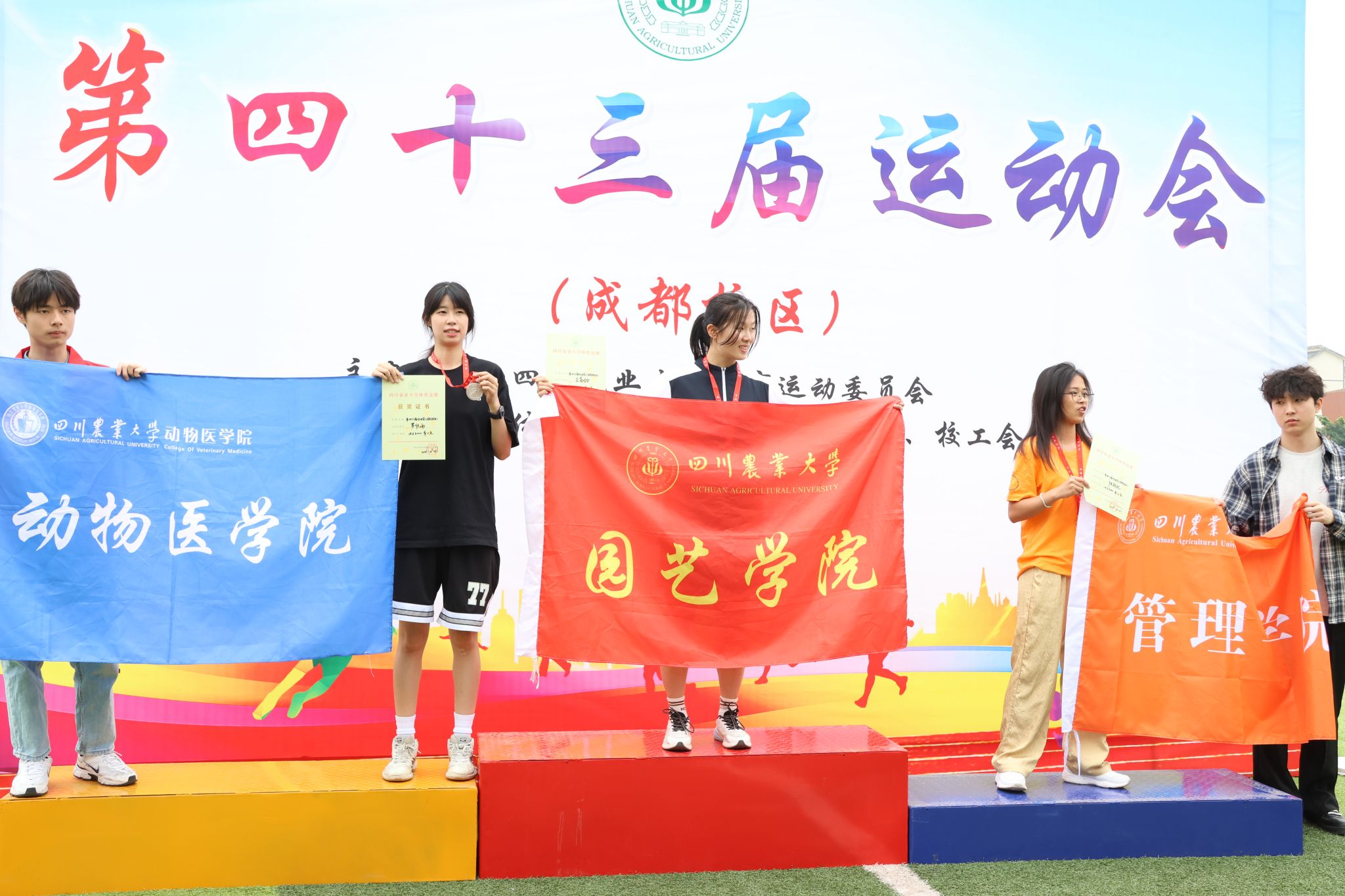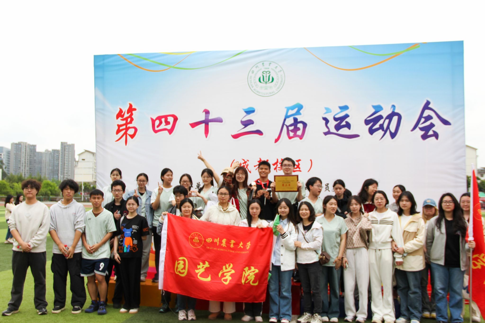 4月25至26日,第四十三届校运会在成都校区运动场举行。200余名园艺师生在30多个项目比赛中敢于拼搏、尽显风采,200余名志愿者同学积极服务比赛和训练。最终教职工勇夺团体总分第一;员工代表队获得总分第六名,较上届成绩取得明显突破。