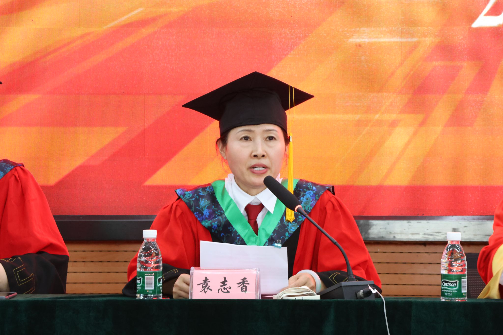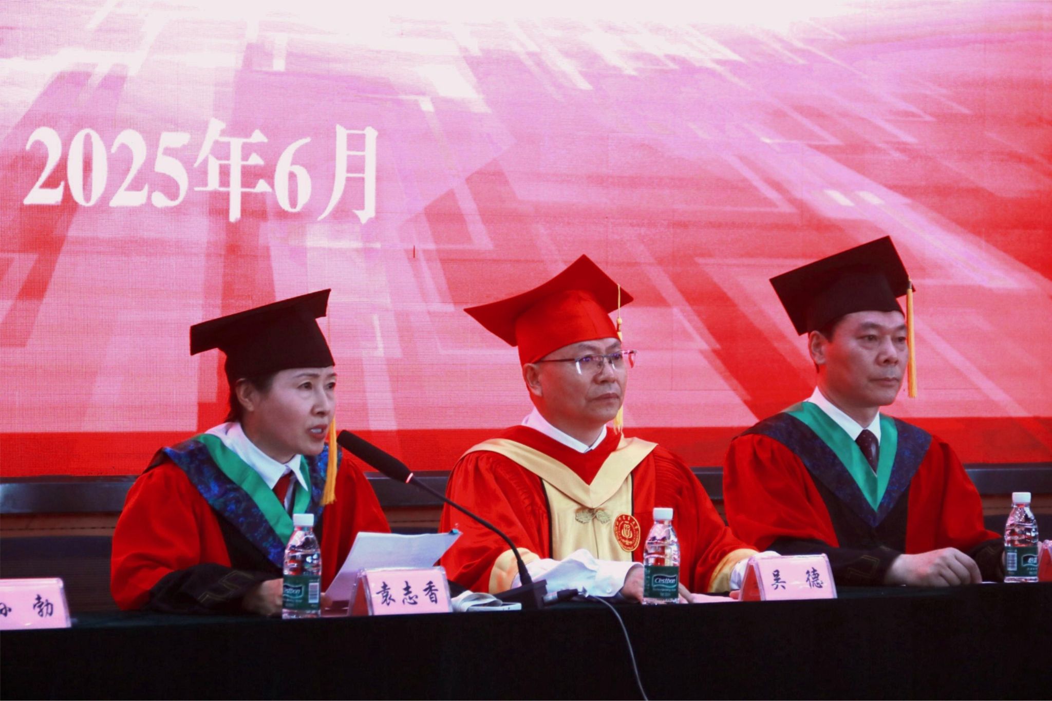 6月12日上午,学院2025届员工毕业典礼暨授位仪式隆重举行。董事长吴德,经理汪志辉,公司党委书记袁志香,副经理、纪委书记龚荣高,副经理孙勃和学院学位评定委员会全体成员出席大会,学院各系室负责人、全体本科生研究生辅导员、毕业班班主任、部分教师代表和全体毕业生参加大会。大会由袁志香主持。