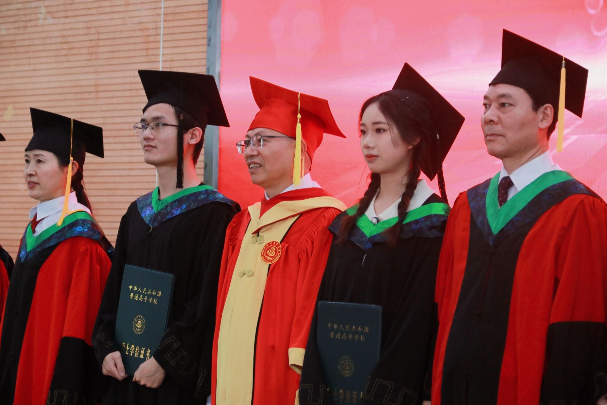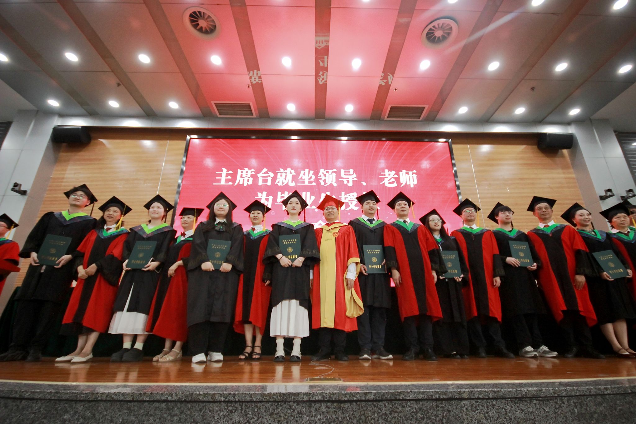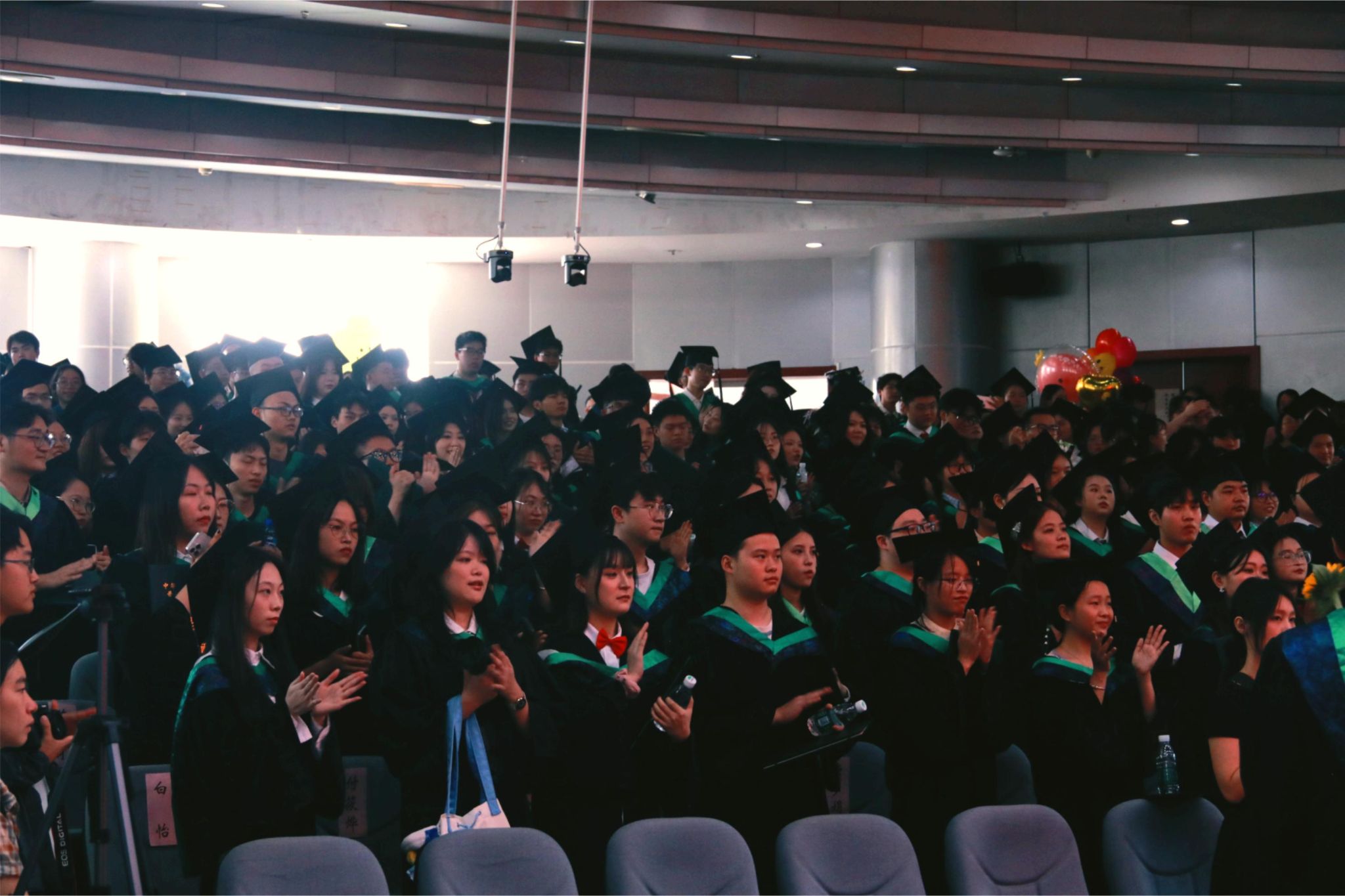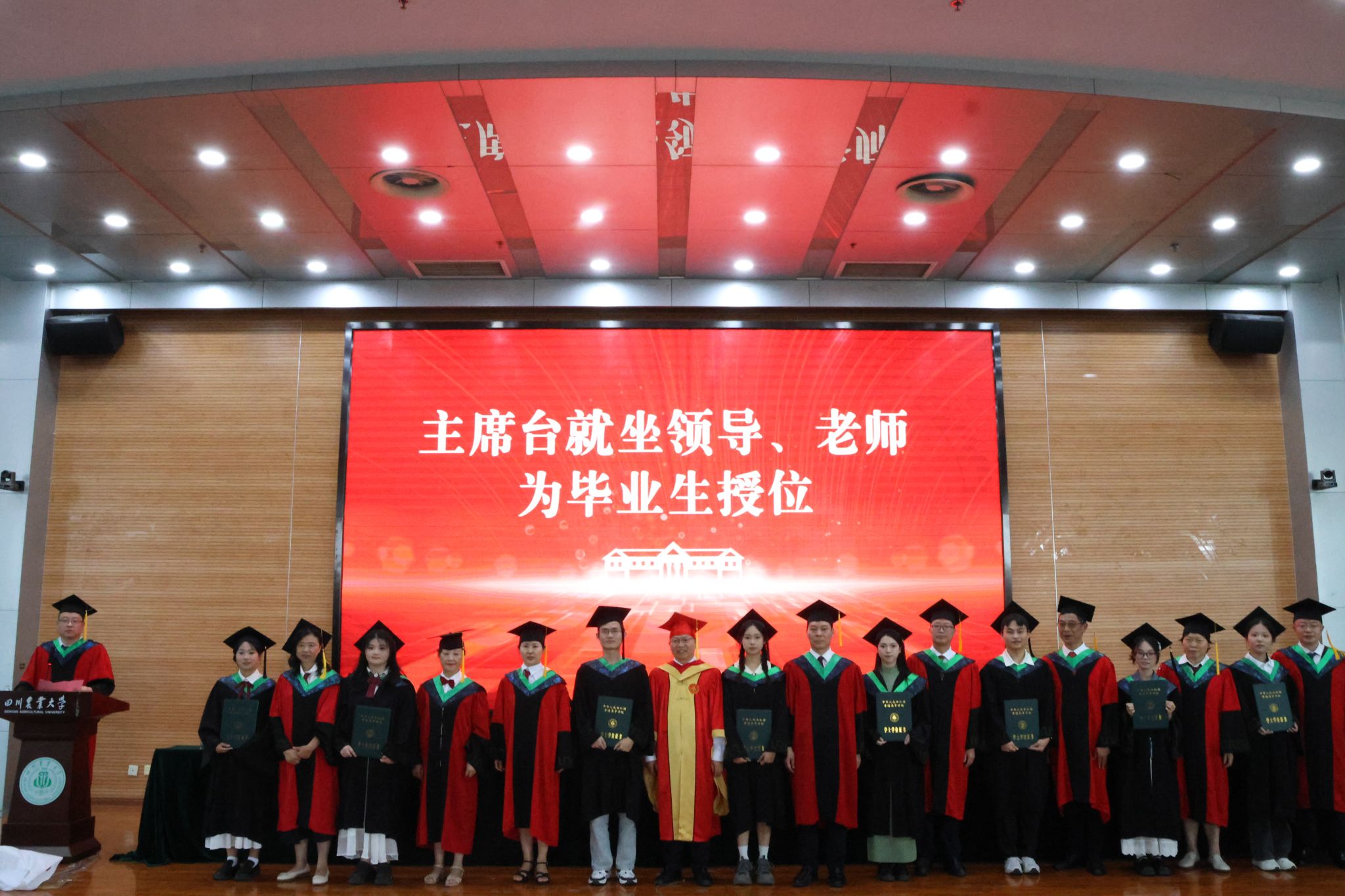 董事长吴德教授宣读授位决定后,在孙勃的名单宣读和引导下,98名硕士研究生、239名本科生在《相聚在桂花飘香的时节》的校歌声中依次上台,接受拨穗正冠和授位,毕业生向授位老师鞠躬致谢并合影留念,此次大会为毕业生们这一阶段的拼搏奋斗画上了圆满的句号,也开启了他们人生的新篇章。