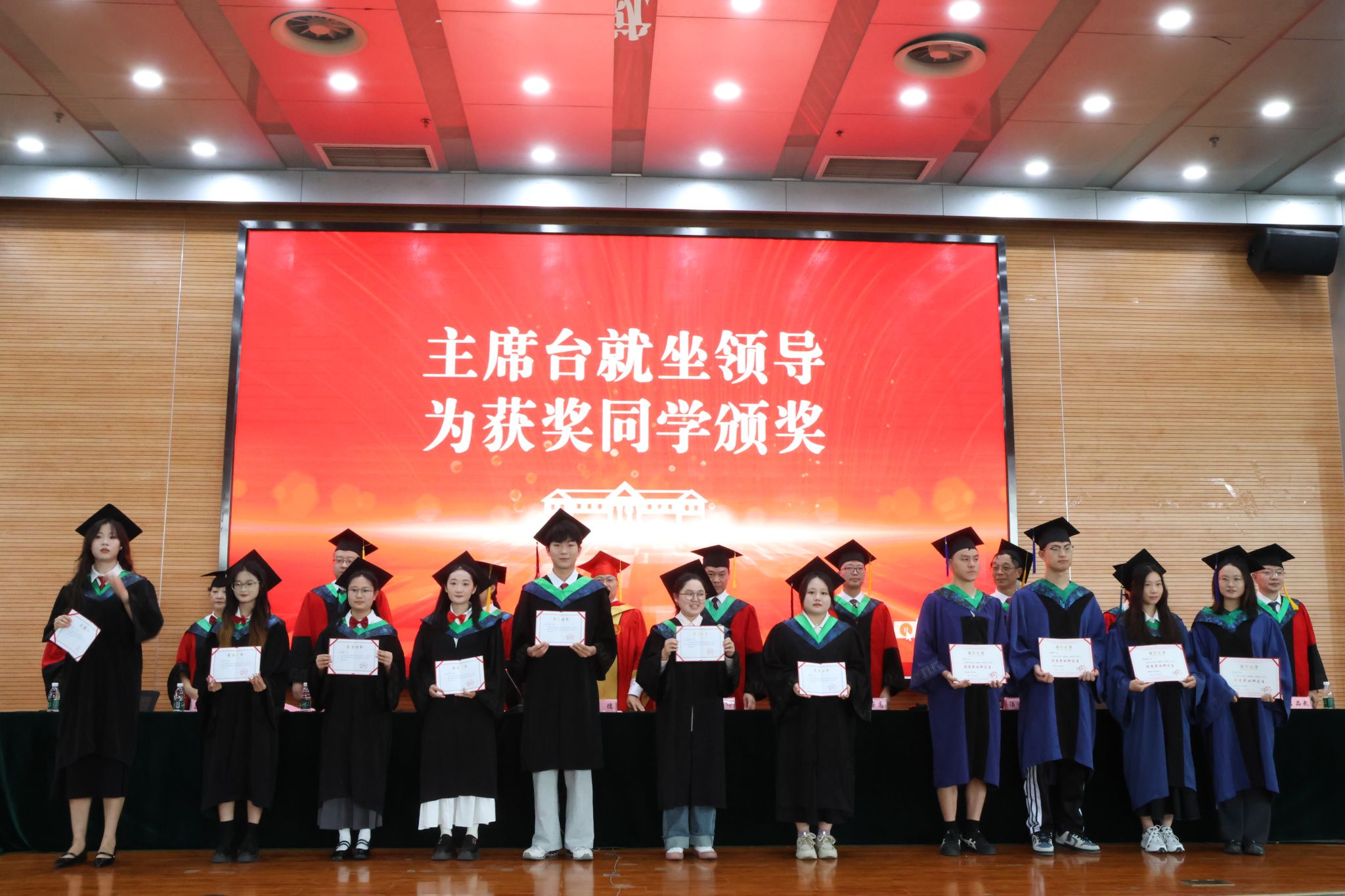龚荣高宣读了《2025届优秀毕业论文表彰决定》《2025届省级、校级优秀大学毕业生表彰决定》。主席台就座的领导为获奖同学颁奖。