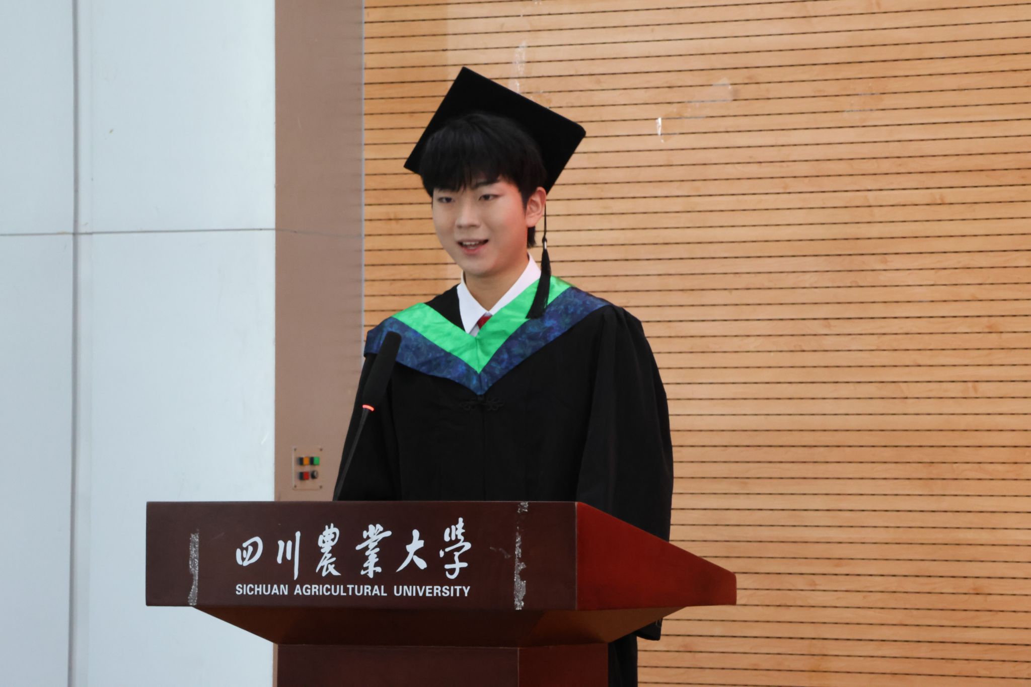 毕业生代表茶学2021级本科生马子涵讲述了通过回忆自己四年求学成长路,表达了对学院、老师们的不舍和美好祝福,对毕业的同伴们送上了最真诚的祝愿。