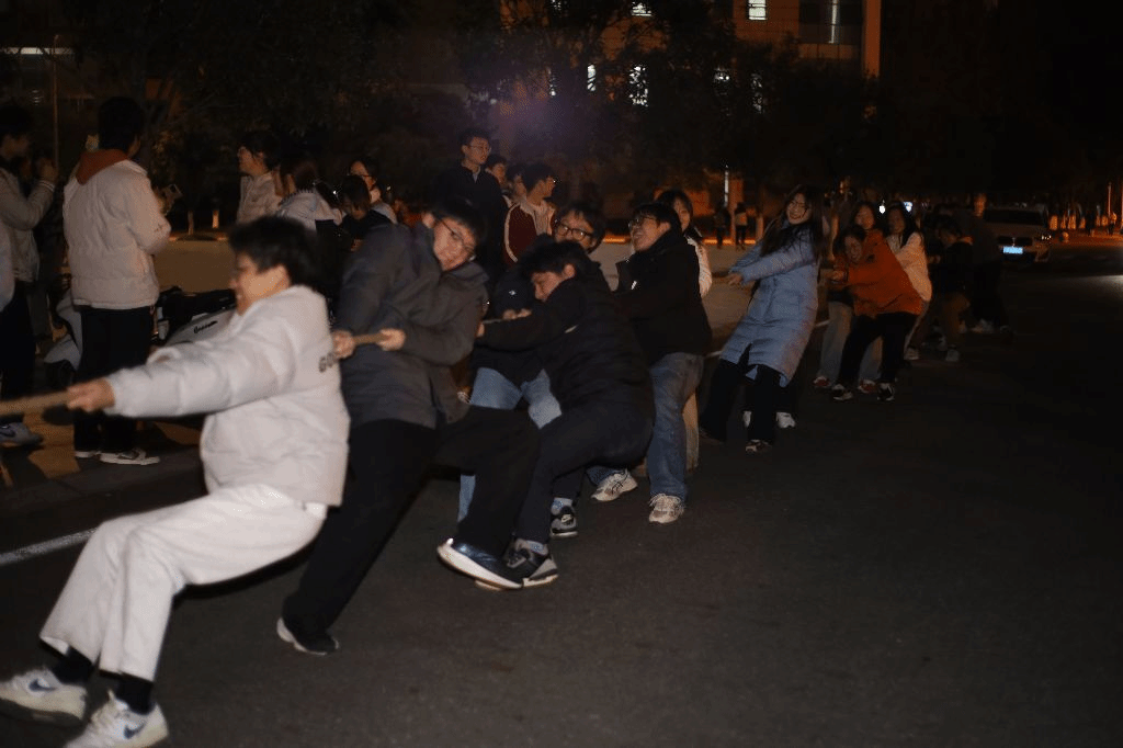 在跳长绳比赛项目中,参赛队员们默契十足。摇绳队员稳稳把控节奏,跳绳队员们找准时机、轻盈跳跃,展现出蓬勃的青春活力。拔河赛现场竞争激烈,裁判哨声响起,双方队员全力以赴,红绸带在中线两侧来回移动,每一寸拉扯都凝聚着团队团结协作的力量。观赛师生们组成的“加油团”,助威声、呐喊声此起彼伏,将现场气氛推向高潮。抱球接力赛队员们怀抱排球,在赛道上快速奔跑,既要避免气球掉落,又要争取时间更短。
