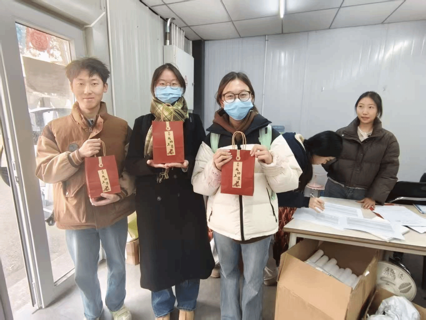 活动当天,志愿者在学院小白房亲手将每一份满载关怀的礼物送到考研学子手中,并且亲口向其祝愿“考研一切顺利!”让寒冬里的研途多份温暖与力量。