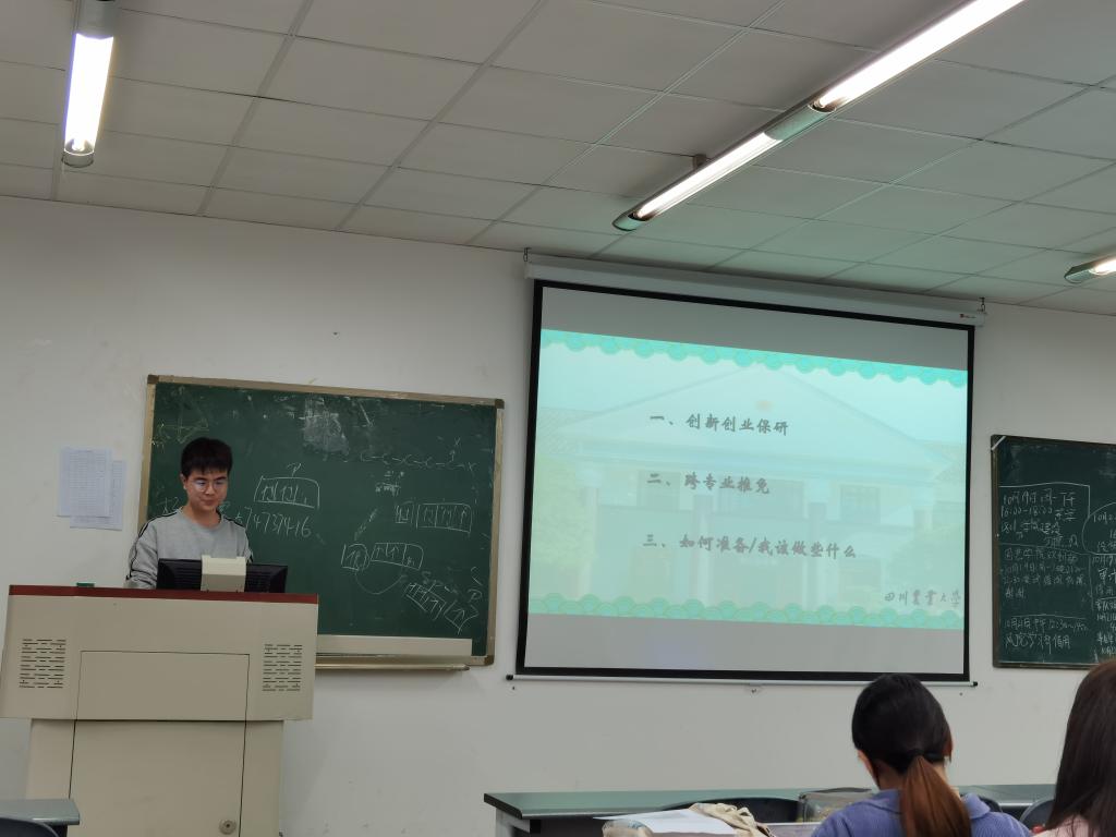 三位优秀的大四员工都向同学们强调了“找到自己真正喜欢的方向,并坚定决心走下去”的重要性。直博保研至浙江大学的杨孟儒向同学们分享了自己的学习心得,还对关于浙大等五所高校的保研概况、夏令营的注意事项等向同学们做了分享,杨孟儒也讲述了自己奋斗的道路上恩师对于自己的帮助、强调了“为探明所爱,不断实践不断规划”的重要性;跨专业保研至西南财经大学的罗浩天从分析保研方式、风险评估等多方面内容向同学们分析了保研道路选择与坚持的问题;直博保研至四川大学的刘鑫睿向同学们分享了自己一年四个月时间里,选择创新创业比赛道路上的经历和感悟。他希望同学们可以善用资源,在参与二课活动中去学习到二课以外的更多知识,并且强调了英语六级的重要性。他也耐心解答了“如何在创新创业中保持成绩”等问题。