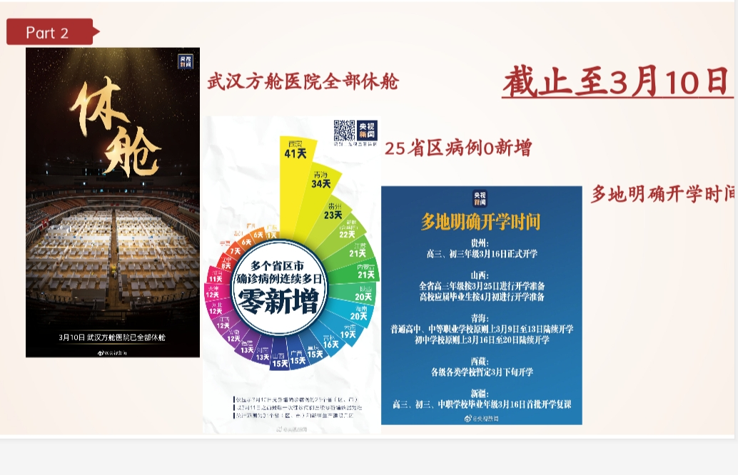 成员齐唱团歌《光荣啊,中国共青团》后,靳铭凇雪向全体同学介绍了疫情的总体形势。他说,截止至3月10日,武汉方舱医院全部休舱,25省区病例现0新增,多地现已明确开学时间,截止至3月17日,湖北现有疑似病例清零,武汉累计治愈出院数超过4万人。看到成绩的取得,我们相信胜利离我们越来越近,希望大家一定按照要求站好疫情防控最后一班岗,一起打赢抗疫攻坚战。