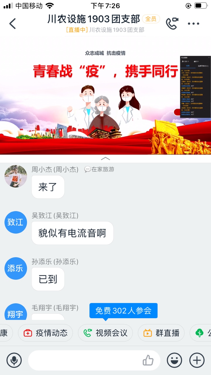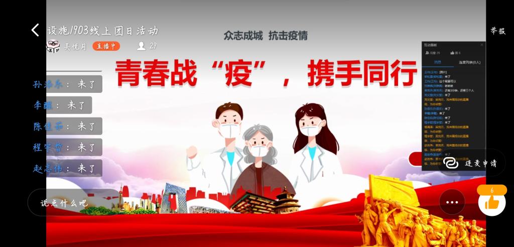 疫情就是命令,防控就是责任!2月22日晚上19:30,设施农业科学与工程201903团支部于线上开展“青春战‘疫’,携手同行”主题团日活动,号召全体团员面对疫情应众志成城、团结“艺”心,展现青春主力军的激情与力量;珍惜时光,蓄积战“疫”能量。