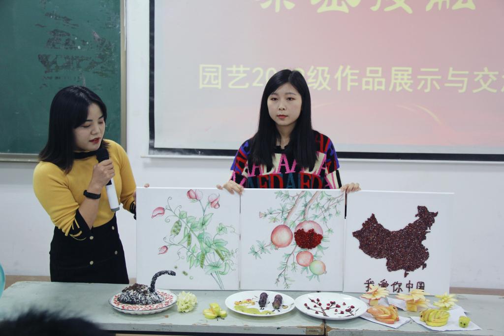 园艺专业研究生刘月蓉、王文欣和园艺2017级张佳文分别展示并解说了各自创造的园艺作品,讲述了自己与园艺相识相知的历程。“初识朦胧,再见倾心,熟识忘我。园艺带给我们的不仅仅是味蕾上的享受与恣意,同时也有精神上的共鸣与满足。园艺是朝阳产业,是晨光下的波光粼粼,也是春风中的昂扬向上。希望新生能够在园艺专业感受到属于园艺专业的美好,也感受到属于自己的美好。”