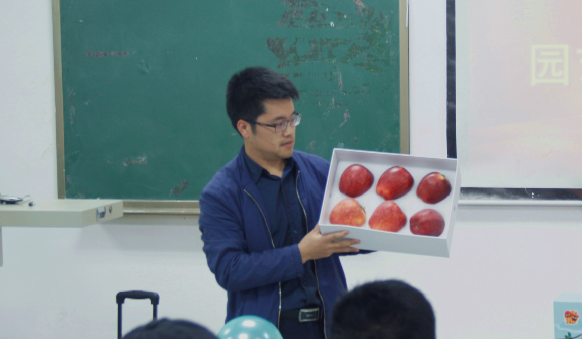 甫一开场,园艺系主任龚荣高教授带带来的由他全程技术指导、运作以及包装的六个市场售价198的苹果包园艺作品一下子吸引力2019级新生的好奇目光,接着龚荣高介绍了这款“高端”园艺作品的创造历史,引发了全场连连惊叹。他希望全体园艺2019级学子能够把握好学习园艺的良好机遇,在今后的学习生涯中,醉心学术,潜心科研,日后创新创造出更多的园艺高端产品。