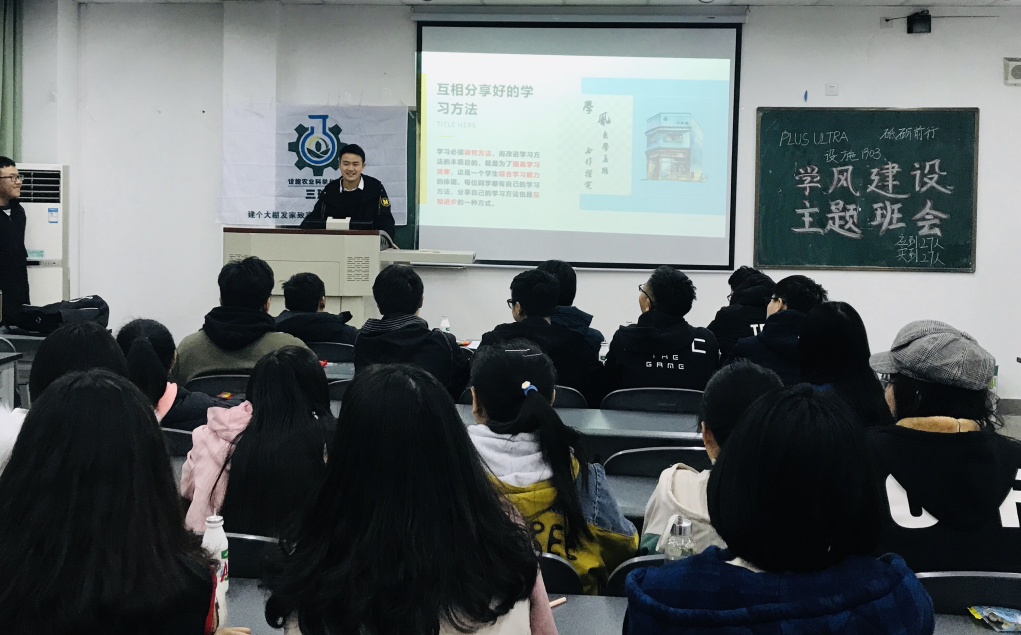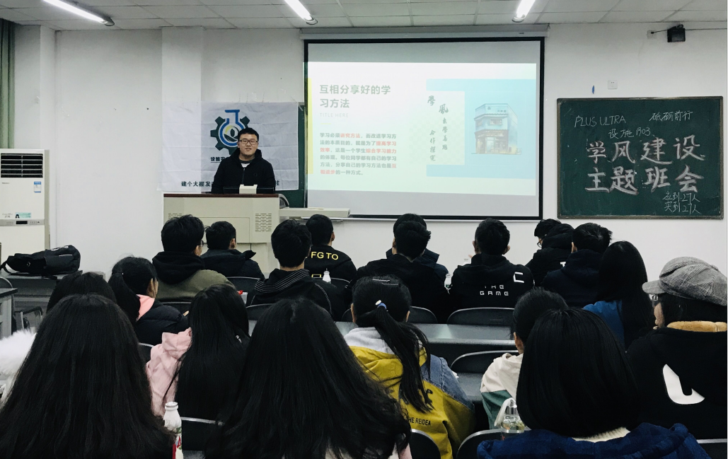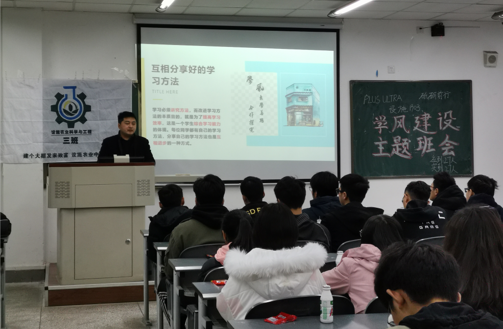 12月26日,设施农业科学与工程201903班在4B505开展“PLUS ULTRA砥砺前行”学风建设主题班会。本次活动主要分为班级同学交流、学长学姐分享经验、班级共勉三个环节。
