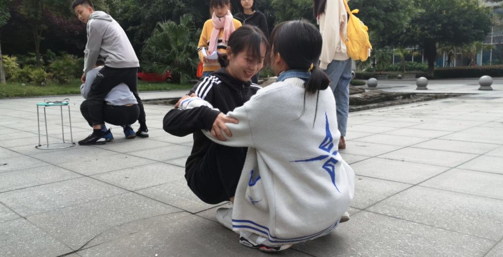上午单项活动共有1分钟计时投篮、坐地起身、乒乓接力、摸石过河+翻卡匹配、心有灵犀、点字成诗、包括穿衣接力、踢毽子、平地行舟,瞎子背瘸子等。活动主要考察同学们的团队协作、协调性、思维敏捷等能力。其中心有灵犀中负责演示的同学为了更好地将成语传达给猜的同学不仅手脚并用,甚至细节到眼神的表现,“愁眉苦脸”一词让各位小戏精们表现的淋漓尽致,围观的同学欢笑声不断,同学们为了胜利也是铆足了劲。各项目中,同学们创意百出,以饱满激情对待比赛,以巧取胜更在多数,场面散发昂扬之气,展现出了哈哈体育的青春风采。
