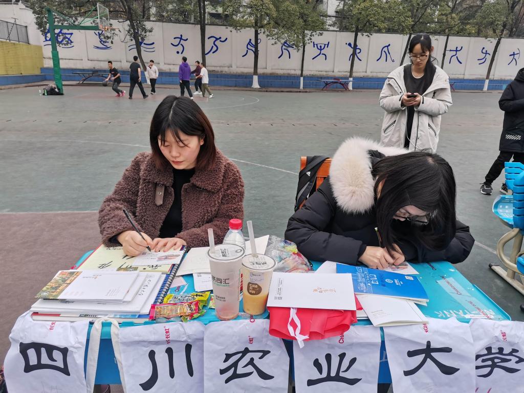 宣讲地点位于绵阳南山中学高三年级运动场,团队通过合理安排位子宣传、发送宣传手册、一对一宣讲等方式,为高三学子解疑答惑,同时消除他们对于农业类院校的偏见,树立正确的未来发展观。在提问环节,团队队员们以幽默欢快的方式解决同学疑问,活跃现场气氛,并介绍大学的有趣课堂教学方式,激励高三学子向着梦想大学前进。