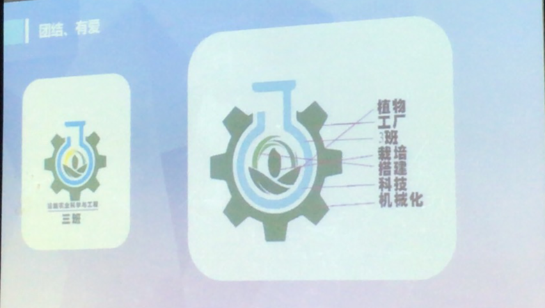 为促进班风和班级文化建设,在敲定班旗,确定口号环节,班级同学首先一致通过了从前期征集的班旗及班徽图案,班旗图案极好的融合了栽培、搭建大棚、机械化、科技、植物工厂和小班等元素,既凸显了专业特色又展现了小班文化。确定了“建个大棚发家致富,设施农业中流砥柱”的班级口号。期间,主持人还就班旗、班徽设计的情况向大家做了汇报,她说在历时一个半月的征集活动中,同学们都积极踊跃的参与,经过大家齐心协力,三件优秀作品从众多作品展中“突围”进入班级选拔环节,经全班同学投票产生候选作品。在整理班主任和全体同学的意见后,主创人员经过反复斟酌、推敲、打磨,得到最终成型图案,并衍生设计出班徽。