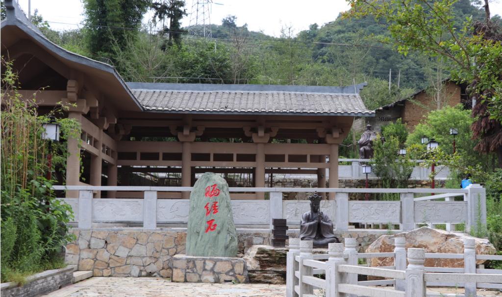经过两个多小时的山路跋涉后,团队于19日中午到达晒经石和晒经关。在晒经石广场,远远即可看见一块非常特别的石头,据当地村民介绍,这块石头是唐僧在横渡流沙河期间打翻经书后,在关帝庙前晾晒经书的大石板,历经几多时光变迁后终于浮现于世。通过对晒经关景点的打造,借助晒经石神话传说的渲染,晒经乡正通过打造特色旅游的方式来吸引各地的游客前来参观游玩。但是由于晒经乡位于大山深处,来往交通较为不便,前来游玩的游客数量并没有达到预期。