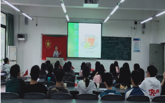 在齐唱团歌中声中,活动正式开始。负责同学运用文字,图片,视频相结合的方式分别为同学们讲述五四百年历史及其蕴含的爱国精神,澳门回归历史,新中国成立70周年发展历史,讲述革命文化与红茶的渊源。精神被时间打磨,红茶历久弥香。