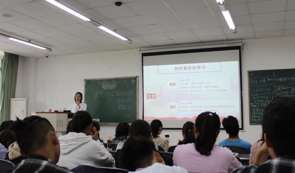 齐唱团歌后活动正式开始,同学们集中观看新中国成立70年来取得成绩的视频,回顾了70载中国解锁的一个个令世界惊叹的成就。班主任助理叶雪莲勉励同学们 “既生逢其时,也重任在肩”,强调应该把握大学时光,学好专业知识,提高自身素质,日后为祖国建设出力。结合自身学习、生活和工作等经验,讲解如何在大学更好地学习与生活,指出大学与高中不同之处,并剖析了大学获得好成绩的着力点,将好好学习的口号具化为可以落实的行动。她结合自身实际的讲解让同学们对大学的不知所措的困惑又减少了一分。活动尾声,入党积极分子怀坝为大家带来诗歌朗诵《中国,我的中国》,抒发了自己对祖国的深厚情感,赢得阵阵掌声。