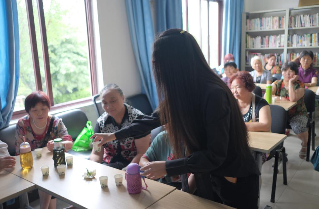 在讲课的过程中,队员们也将六大茶类用不同方法冲泡,并将泡出的茶汤给课上的老人们品尝,并在讲述结束后询问老人们不同茶叶的口感差别,老人们对茶叶的口味做出了自己的评价。“我觉得还是乌龙茶符合我的口味,茶汤中的花果香充分的被冲泡出来,口感也很好。”一名老人称赞道。