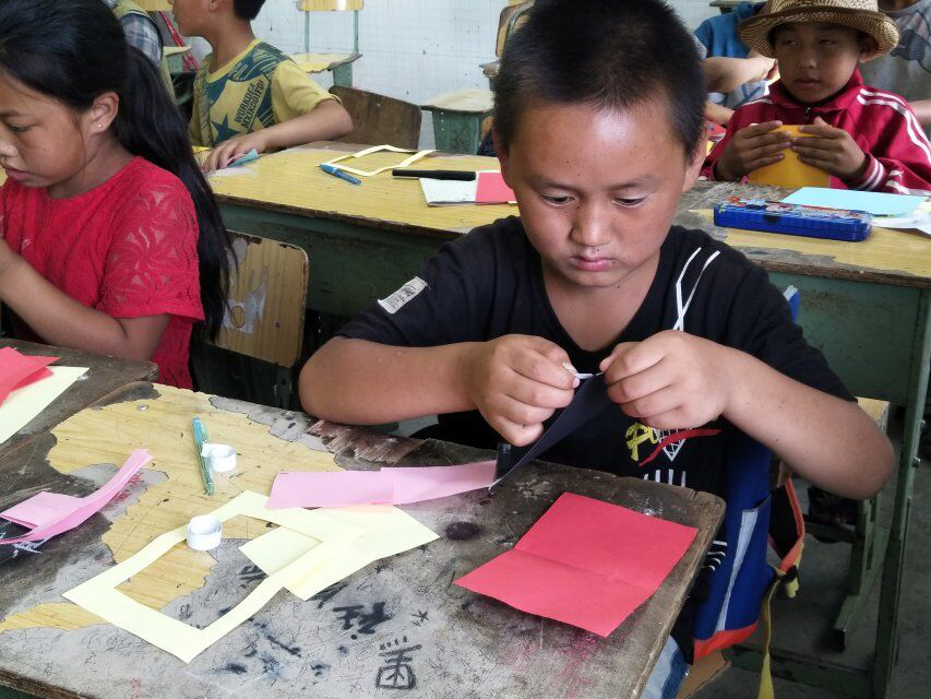 在实践中,团队志愿者们给孩子们准备了“趣味数学”、“物理实验”、“益智英语”、“多彩语文”等文化课程。在课堂上,孩子们都很认真地做笔记,积极回答志愿者提出的问题,专心致志的眼神透露出他们对知识的渴望。期间,志愿者们也开展了“兴趣剪纸”、“相框制作”、“搭桥过河”等趣味性很高的活动。对这些活动,孩子们参与度和兴趣都很高,活动气氛也很融洽。实践活动的最后一个项目,是志愿者们和孩子们一起包饺子,孩子们包的饺子形状各异,虽然有的孩子不是很会包饺子,但是也尽力学着志愿者的样子,小心地把饺子包成他们能做到的最好的样子。