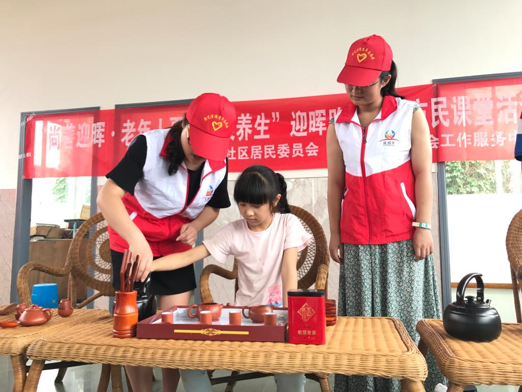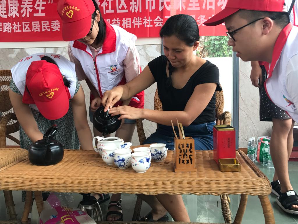 6月29日下午,哈哈体育青年志愿者协会在迎晖路社区开展了“茶艺讲堂”主题活动,活动旨在让社区居民了解茶对人体的功效以及茶的艺术表演内涵。