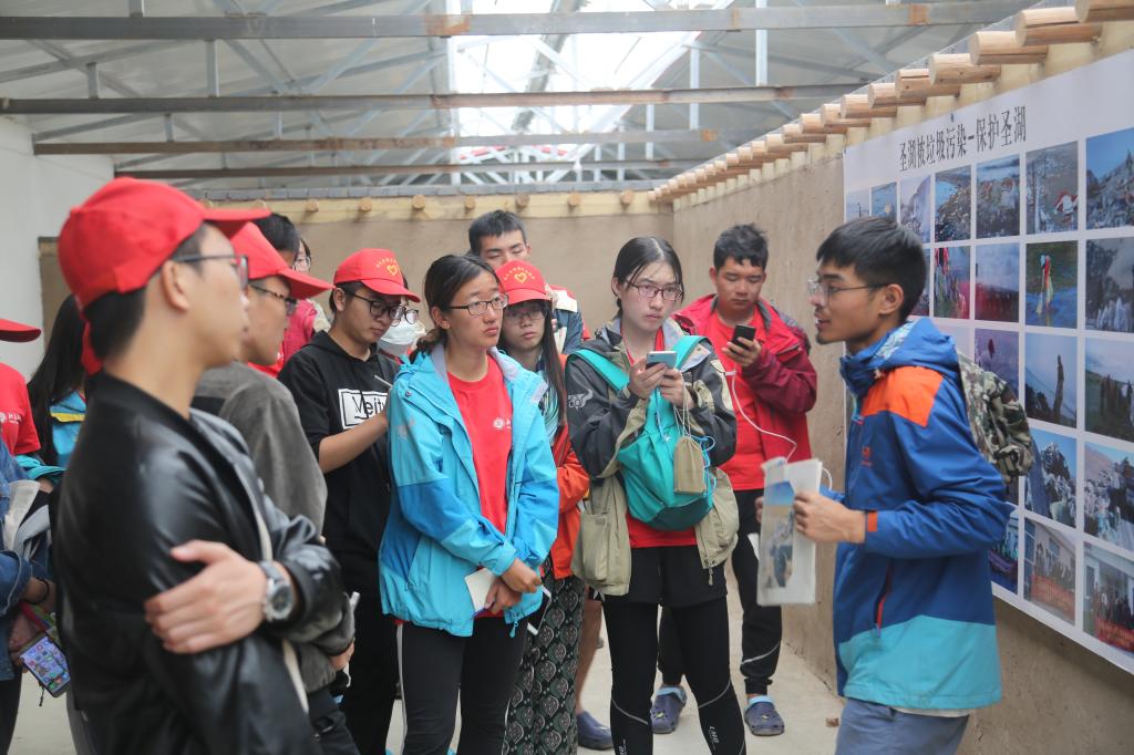 拓青行团队成员为游客和北大同学讲解圣湖垃圾治理