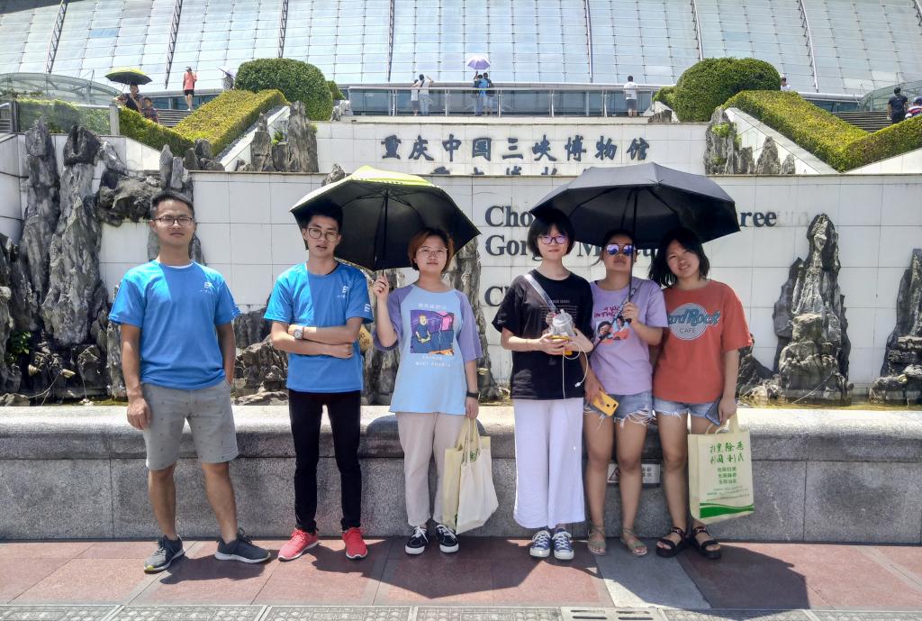 一周内,队员们参观了大轰炸遗址、李子坝抗战遗址公园、歌乐山烈士陵园等等……参观游览之余,队员们联合当地社区办事小组一同宣传“除恶扬善”主题活动并与他们合影留念。