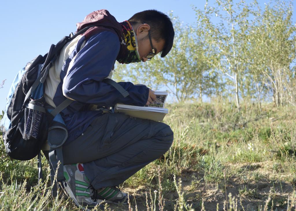 经过近两个小时的跋涉,团队成员深入到沙漠腹地的一片原始森林,稍作调整便立马便投入到了除虫工作中。于大树之下铺一层白布,先抖动枝干把虫子摇下,然后用手捉住虫子放进瓶中。在这过程中,由于害虫的腿部有倒刺,实践成员王鑫尽管戴着手套也还是被钜伤,可他仍然忍受着伤口的疼痛继续工作。炎炎烈日之下,每日近4个小时的跋涉、近4个小时的捉虫任务,这枯燥又费神的工作令“拓青行”团队成员感到疲乏,可看着地上被虫咬死的枯干,一份守护生命的责任感却在心底自发而生,推动着每一位“拓青行”成员坚守着自己的使命。