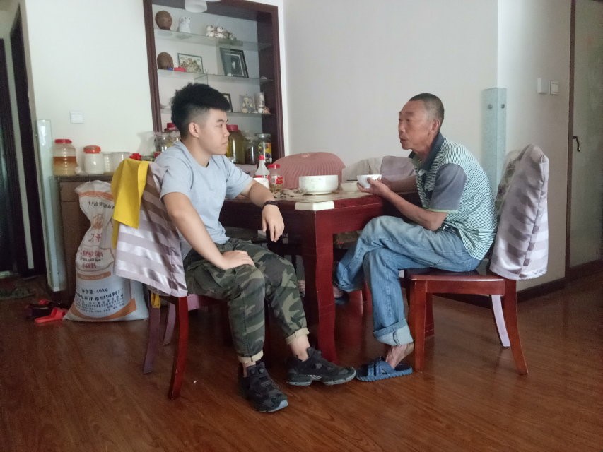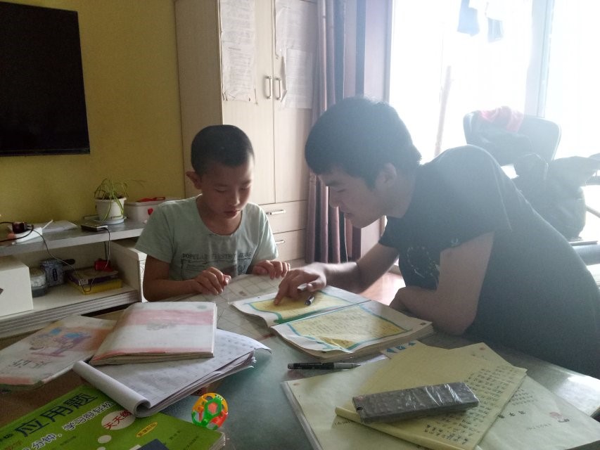 志愿者与王冉的爷爷在桌前交流着王冉近来的学习情况,了解到最近王冉更换了班主任,学习上可能有些松懈,成绩下降比较严重。园艺青协的志愿者们经过商议后,初步决定每两周派一位志愿者到王冉家中进行辅导以帮助王冉提高学习成绩。同时,还了解到王冉家的家庭情况非常不乐观,因为某些原因,王冉完全由爷爷奶奶照顾,其中就牵涉到爷爷奶奶的年龄大了不能对王冉进行学习上的帮助和生活上很全面的照顾,所以决定再加强对王冉的生活上的关注。