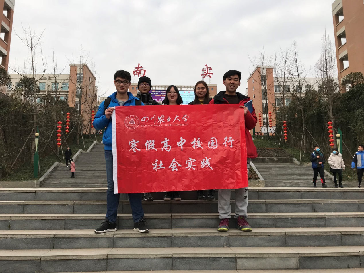 2018年2月1日,川农学子组成4支队伍回到位于四川省绵阳市的南山中学实验学校进行回校宣讲社会实践活动,作为南实小分队之一的南实二队分别在高一和补习年级进行了3个班的宣讲活动。此次活动旨在让高中学弟学妹们更全面科学的了解川农和收获适合自己的学习方法树立理想目标,并通过生动活泼的方式让学弟学妹们更快的理解和接受,保证活动效果。