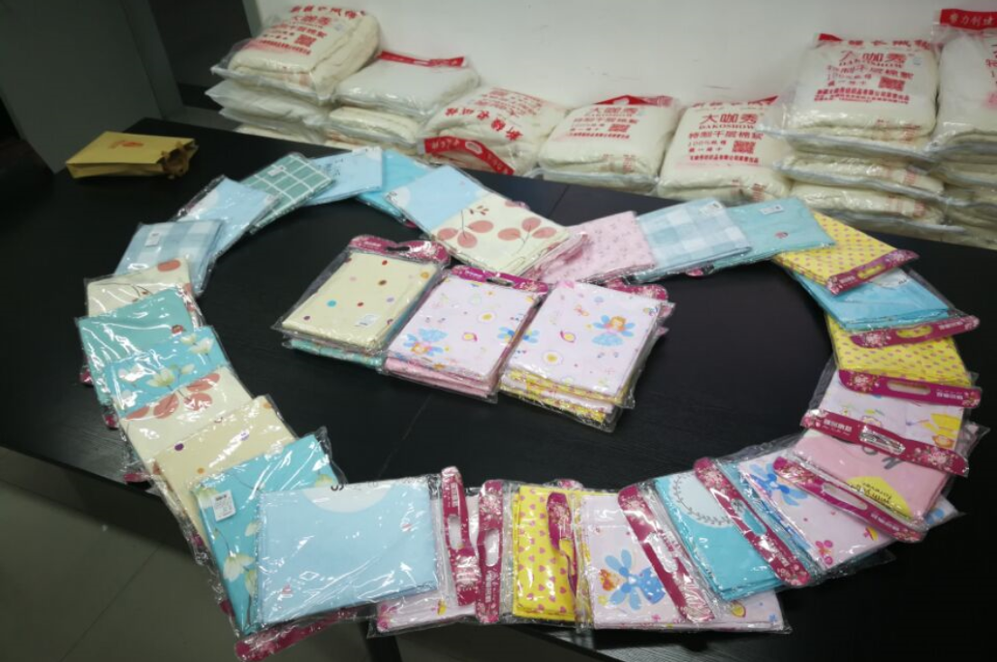 在当天的分发现场,气氛温馨、有爱,活动现场工作人员还特意将资助物品摆放成“心”型图案。