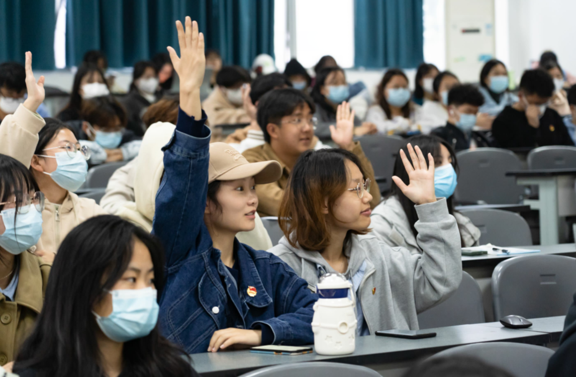 在“不负青春誓言 ,书写奋进篇章”主题宣讲环节,青马班学姐贾明月做出了以“学习党的二十大报告,推动经济高质量”为主题宣讲。回顾了党的十九大以来经济发展取得辉煌成就,提出了现在党的目标是构建高水平社会主义市场经济体制,最后从具体措施上为大家分享了她的学习成果,建设现代化产业体系、全面推进乡村振兴、促进区域协调发展、推进高水平对外开放。“无论过去、现在还是未来,中国青年始终是实现中华民族伟大复兴的先锋力量!”民族有所呼,党和人民有所唤,青年必有所应;青年行,民族复兴必定行。