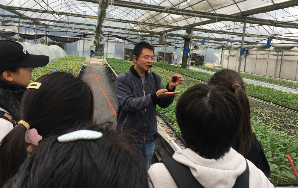 练华山还带领同学们参观了他所指导的员工种植的大白菜的情况,并从蔬菜种质资源收集和如何杂交育种的角度详细介绍了所在团队对番茄、菜豆和紫菜薹等新材料的选育过程。在此基础上,他对蔬菜产业的发展前景也进行了介绍,为同学们的职业规划提供了参考建议。