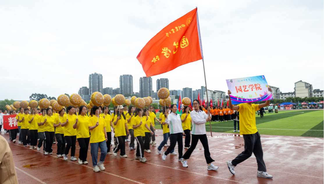 在开幕式上,各入场方阵百花齐放,公司党委书记袁志香带领方阵意气风发入场。同学们身穿黄色T恤和深色运动裤,T恤上清晰地印着——“立园博学,精艺惠民” 的院训。大家手持橘子气球,带着自信的笑容,入场时劲头十足,目光坚定,步伐铿锵有力。